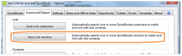 Added a new Quick-Link facility to match and link vendors in QB with their equivalent records in Act!. Previously this was only available for customer record linking.